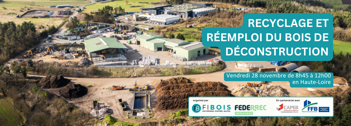 Fibois AuRA et FEDERREC Centre Sud-Est organisent en partenariat avec CAPEB43 et FFB43, une demi-journée consacrée aux circuits de revalorisation du bois issus de déconstruction à destination des entreprises et artisans de construction, charpente, menuiserie et des maitres d’œuvre et maitres d’ouvrage intéressés, vendredi 28 novembre en Haute-Loire.