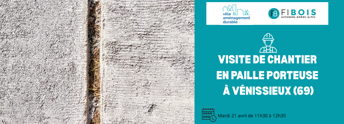 Ville et aménagement durable et Fibois Auvergne Rhône-Alpes vous invite à la visite d’un chantier en paille porteuse à Vénissieux (69)*, le mardi 21 avril de 11h30 à 12h30.