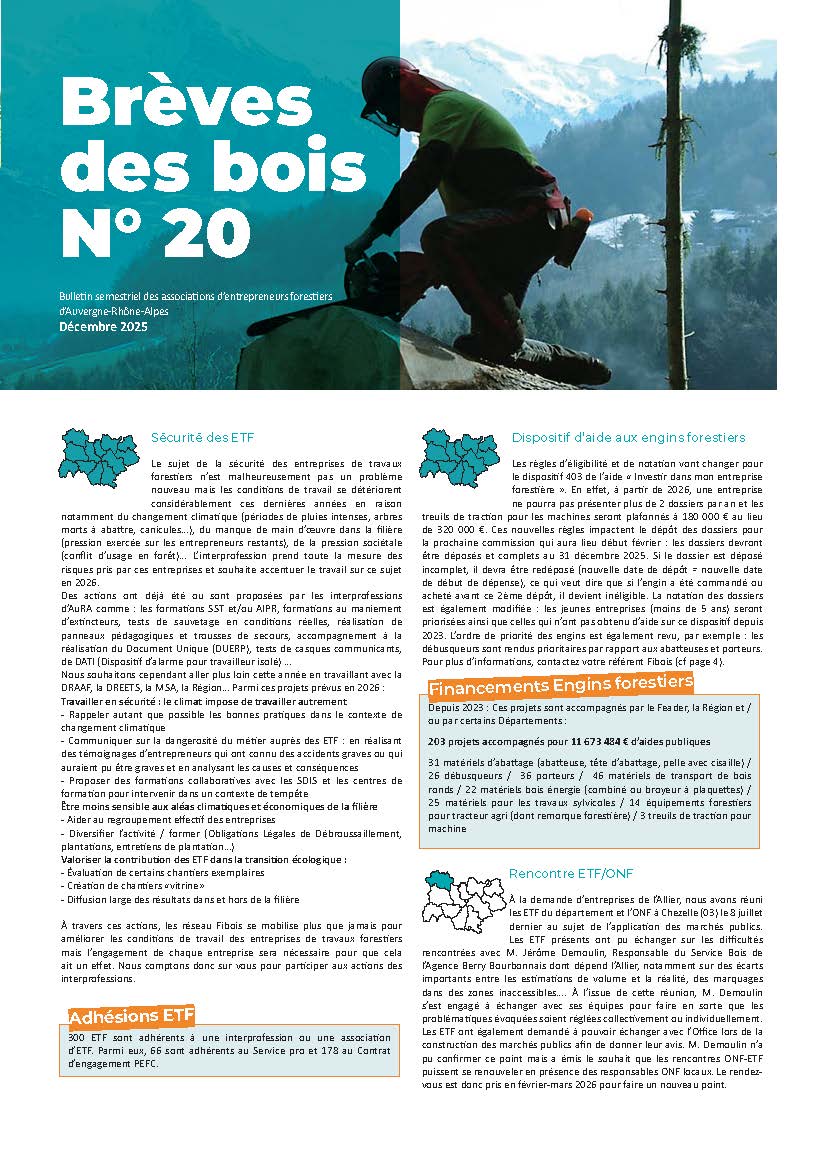Bulletin semestriel des associations d’entrepreneurs forestiers de Rhône-Alpes